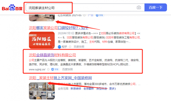 沈陽(yáng)金*晶裝飾材料有限公司新站排名快上詞效果展示