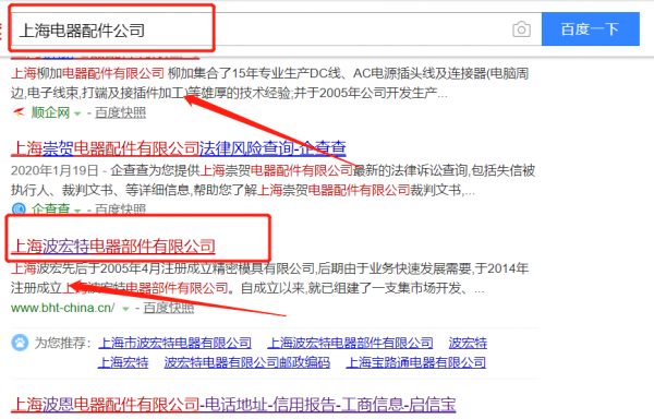 上海波宏特電器部件有限公司選用我司企業(yè)電器配件行業(yè)的網(wǎng)站優(yōu)化產(chǎn)品,其SEO關(guān)鍵詞有電器配件。按天計費,最快7天上詞,不到首頁不扣費。關(guān)鍵詞質(zhì)量保證,白帽SEO符合百度算法,360、搜狗、移動端等排名效果免費贈送。上海波宏特電器部件有限公司成立于2005年,是經(jīng)上海市市場監(jiān)督管理局審核的有資質(zhì)的公司,其統(tǒng)一社會信用代碼:9131011431249461XL。公司地址:上海市嘉定區(qū)朱戴路1783號1幢C區(qū)。