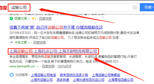 我們公司與上海本耐物流有限公司合作中,對這個公司所經營的運輸這個行業提供了百度快照排名,與改公司的合作,更多的客戶讓我們公司為其提供百度快照排名,通過每一次合作,我們公司不斷完善自己,同時希望合作伙伴在經營的路上越來越好。