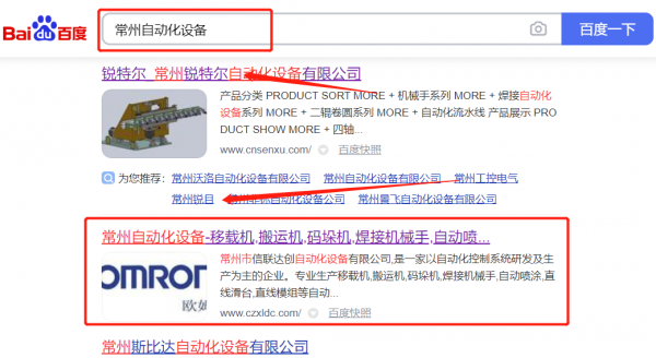 常州市信*達創(chuàng)自動化設備有限公司百度關鍵詞排名保證在首頁效果
