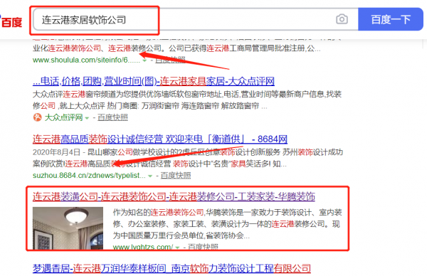 連云港*騰裝飾工程有限公司選用我司企業家居軟飾的網站優化產品,其SEO關鍵詞有家居軟飾的。按天計費,最快7天上詞,不到首頁不扣費。關鍵詞質量保證,白帽SEO符合百度算法,360、搜狗、移動端等排名效果免費贈送。連云港*騰裝飾工程有限公司成立于2007年,是經連云港市市場監督管理局審核的有資質的公司,其統一社會信用代碼:91320706**4925196G。公司地址:江蘇省連云港市海州區解放東路282號新世紀商貿城15號樓2商鋪。