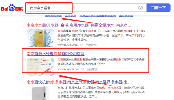 南京首*水處理設(shè)備有限公司整站優(yōu)化最快上詞效果展示