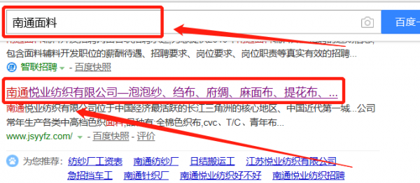 我們公司與南通悅業紡織有限公司合作中,對這個公司所經營的面料這個行業提供了SEO優化,與該公司的合作,更多的客戶讓我們公司為其提供SEO優化,通過每一次合作,我們公司不斷完善自己,同時希望合作伙伴在經營的路上越來越好。