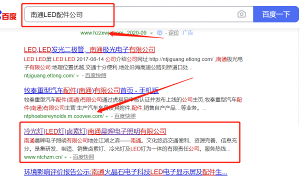 南通*暉電子照明有限公司網站優化最快上詞效果展示
