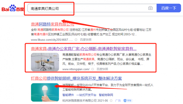 南通*乾智能家具有限公司關鍵詞推廣排名效果展示