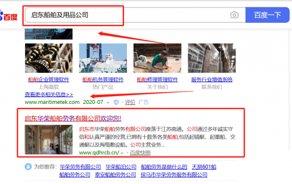 啟東市*榮船舶勞務有限公司選用我司企業船舶及用品的網站優化產品,其SEO關鍵詞有船舶及用品。通過對搜索引擎目標關鍵詞優化,使目標網站的相關信息顯示在百度首頁,為企業挖掘更多的潛在客戶的同時帶來海量的商機。啟東市*榮船舶勞務有限公司成立于2004年,是經啟東市市場監督管理局審核的有資質的公司,其統一社會信用代碼:91320681**98621872。公司地址:江蘇省啟東市呂四菜場巷聯建樓10號樓110號。