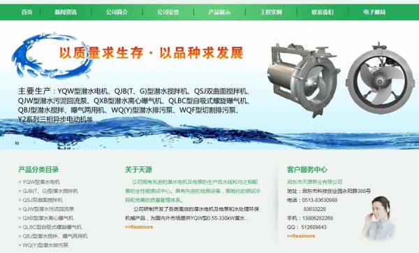 啟東市*源泵業有限公司選用我司企業機電設備行業的網站優化產品,其SEO關鍵詞有 曝氣機,潛水排污泵,潛水攪拌機,潛水電機。其特點是用很合適的展示方式、展示效果、站點框架,把客戶及其用戶很關心的問題突出表現;并以簡潔明朗的設計風格,清晰展現公司水平實力,確保一秒抓住目標用戶眼球,給用戶留下良好的第一印象。啟東市*源泵業有限公司成立于2000年,是經啟東市市場監督管理局審核的有資質的公司,其統一社會信用代碼:91320681718**40839。公司地址:江蘇省啟東市科技創業園永陽路388號 。
