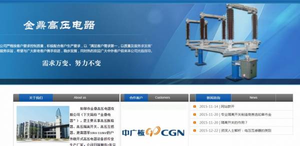 如皋市*鼎高壓電器有限公司(下文簡稱“*鼎電器”),是主要從事高壓斷路器、高壓隔離開關(guān)、高壓互感器、避雷器等10kV-110kV的戶外敞開式高壓電器設(shè)備的專業(yè)生產(chǎn)廠家。公司目前擁有2條完善的生產(chǎn)裝備線,年生產(chǎn)能力達到400多臺套以上。*鼎電器公司堅持產(chǎn)品以技術(shù)創(chuàng)新,質(zhì)量可控,性能穩(wěn)定、服務優(yōu)質(zhì)為企業(yè)宗旨,產(chǎn)品廣泛應用于電力、冶金、石化、機械、交通等部門,目前產(chǎn)品已在中廣核、電力系統(tǒng)、中電投、石油、新疆建設(shè)兵團等工程項目嶄露頭角。