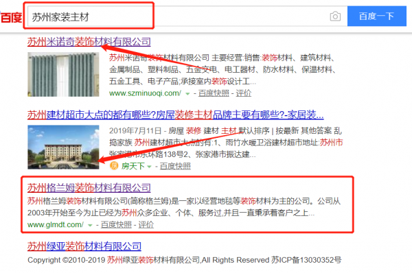 我們公司與蘇州格蘭姆裝飾材料有限公司合作中,對這個公司所經(jīng)營的家裝主材這個行業(yè)提供了關(guān)鍵詞搜索排名,與該公司的合作,更多的客戶讓我們公司為其提供關(guān)鍵詞搜索排名,通過每一次合作,我們公司不斷完善自己,同時希望合作伙伴在經(jīng)營的路上越來越好。