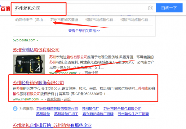 我們公司與蘇州輕舟箱包服飾有限公司合作中,對這個公司所經營的箱包這個行業提供了百度快照排名,與該公司的合作,更多的客戶讓我們公司為其提供百度快照排名,通過每一次合作,我們公司不斷完善自己,同時希望合作伙伴在經營的路上越來越好。