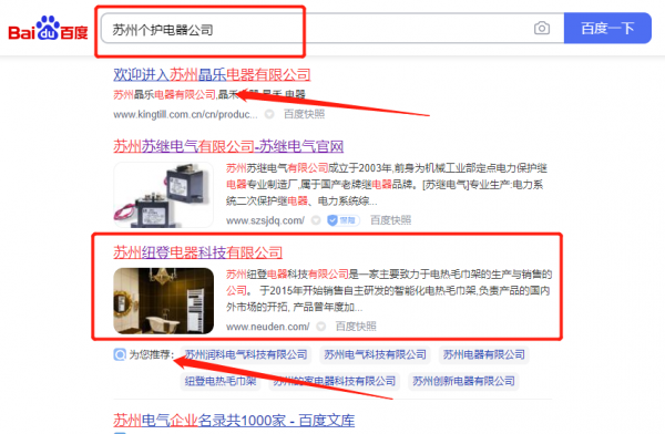 蘇州紐*電器科技有限公司網(wǎng)站推廣排名效果展示