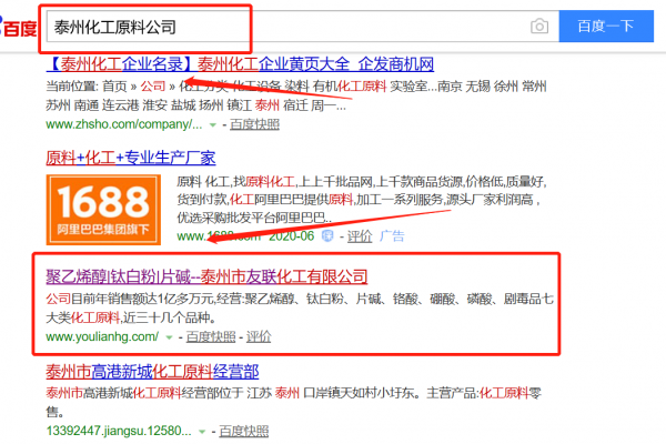 泰州市友聯化工有限公司與我司簽下百度霸屏協議