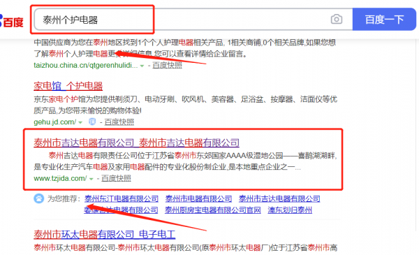 泰州*達(dá)電器有限責(zé)任公司百度關(guān)鍵詞排名整合營銷推廣