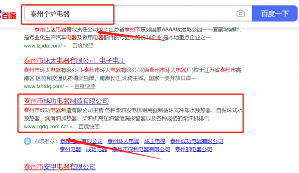 泰州市*功電器制造有限公司百度關鍵詞排名到首頁無排名不收費