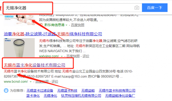 我們公司與無錫市藍卡凈化設備技術有限公司合作中,對這個公司所經營的凈化器這個行業提供了百度快照排名,與該公司的合作,更多的客戶讓我們公司為其提供百度快照排名,通過每一次合作,我們公司不斷完善自己,同時希望合作伙伴在經營的路上越來越好。
