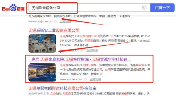 我們公司與無錫壹*華宇科技有限公司合作中,對這個公司所經營的影音設備這個行業提供了百度排名,與該公司的合作,更多的客戶讓我們公司為其提供快速排名,通過每一次合作,我們公司不斷完善自己,同時希望合作伙伴在經營的路上越來越好。