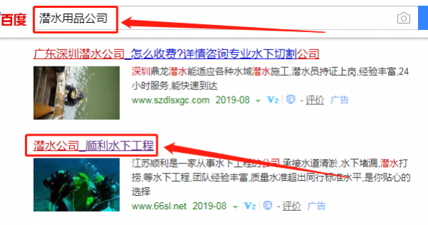 我們公司與江蘇順利水下工程有限公司合作中,對這個公司所經營的潛水用品這個行業提供了SEO推廣,同時讓我們積累到更多的經驗,與江蘇順利水下工程有限公司建立了友好的合作伙伴的關系,也提高了海洋網絡在同行業的知名度,提高了江蘇順利水下工程有限公司在同行業的知名度,發展越來越好。