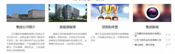 江蘇嘉和機械集團有限公司成立于2004年3月,總部坐落于揚州廣陵經濟開發區,是一家以高科技產業為主導的大型投資控股集團,產業涵蓋汽車及零配件、汽車銷售、綠色農業、工業設施和電力系統等領域。嘉和集團始終秉承“創新、發展、卓越”的企業精神緊緊抓住戰略機遇,持續推進改革創新,走出一條由加工制造到高端服務,由要素投入、管控到創新驅動的轉型升級新路子。嘉和集團現擁有四家主要控股企業和多家投資參股企業。采用緊密型集團管理模式,推動下屬企業發展。旗下有多家國家級高新技術企業,集團及下屬多家企業連續多年被評為“省小巨人企業”“省明星企業”“揚州市百強企業”““國內各汽車主流制造企業的優秀供應商和技術創新”等榮譽稱號。