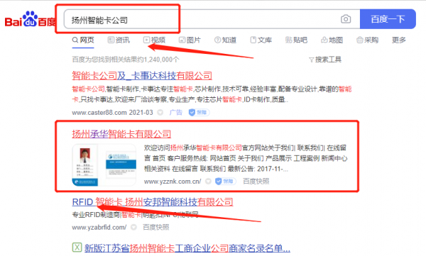 揚州*華智能卡有限公司快速排名最快上詞效果展示