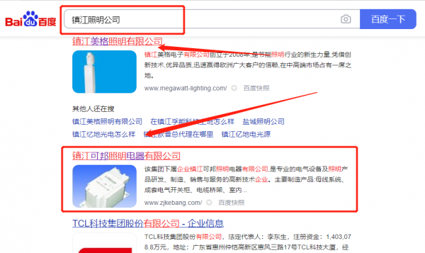 鎮江*邦照明電器有限公司網絡營銷最快上詞效果展示