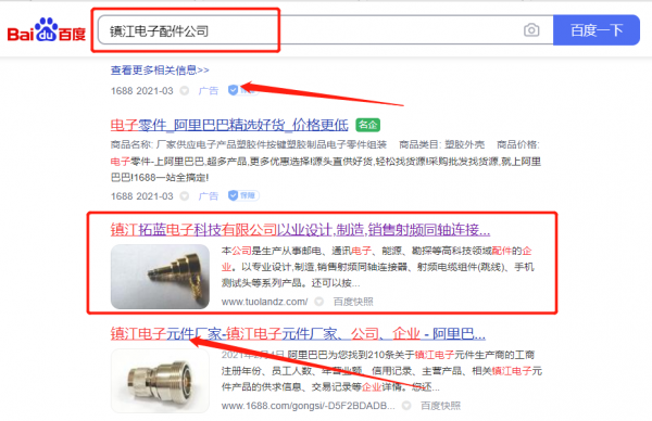 鎮江*藍電子科技有限公司選用我司電子配件的網站優化產品,其SEO關鍵詞有電子配件。專注于高品質網絡品牌運營推廣服務,在網絡中樹立企業品牌形象,提高搜索關鍵詞轉換率,以及多終端廣告展現!鎮江*藍電子科技有限公司成立于2011年,是鎮江市市場監督管理局審核的有資質的公司,其統一社會信用代碼:913211005**4462145。公司地址:江蘇省鎮江市京口區諫壁焦灣村。
