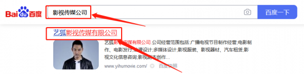 藝*影視傳媒有限公司關鍵詞搜索排名案例欣賞