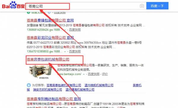 蒼南奔泰包裝機械有限公司和我公司簽訂百度快照排名項目