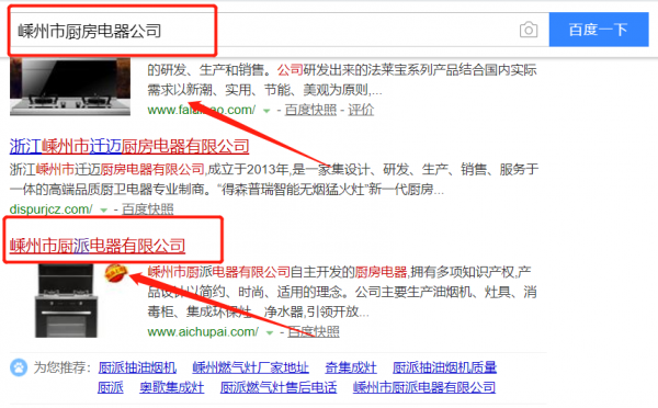嵊州市廚派電器有限公司與本司簽約百度快照排名協議