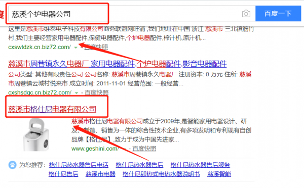 我們公司與慈溪市格仕尼電器有限公司合作中,對這個公司所經營的個護電器這個行業(yè)提供了百度快照排名,與該公司的合作,更多的客戶讓我們公司為其提供百度快照排名,通過每一次合作,我們公司不斷完善自己,同時希望合作伙伴在經營的路上越來越好。