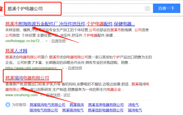 我們公司與慈溪瑞鴻電器有限公司合作中,對這個公司所經營的個護電器這個行業提供了百度快照排名,與該公司的合作,更多的客戶讓我們公司為其提供百度快照排名,通過每一次合作,我們公司不斷完善自己,同時希望合作伙伴在經營的路上越來越好。