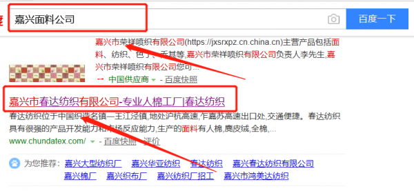 嘉興市春達(dá)紡織有限公司與本司簽約百度快照排名協(xié)議