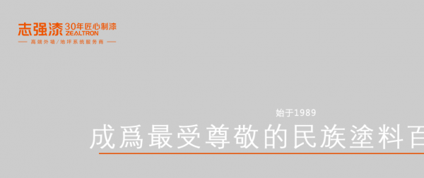 志強漆是中國建筑涂料的領先者,專業(yè)提供外墻涂料、地坪漆、交通設施等產(chǎn)品,是集研發(fā)、生產(chǎn)、銷售、設計、施工于一體的高端外墻/地坪系統(tǒng)服務商。志強漆創(chuàng)建于1989年,占地面積110畝,建筑面積48000平方米,下轄浙江志強涂料有限公司和擁有二級建筑裝修裝飾施工資質(zhì)的浙江志強涂料裝飾有限公司。志強漆是中國建筑涂料的領先者,專業(yè)提供外墻涂料、地坪漆、交通設施等產(chǎn)品,是集研發(fā)、生產(chǎn)、銷售、設計、施工于一體的高端外墻/地坪系統(tǒng)服務商。