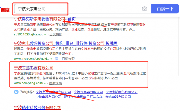 寧波*鵬電器有限公司選用我司企業(yè)大家電的網(wǎng)站優(yōu)化產(chǎn)品,其SEO關(guān)鍵詞有大家電。SEO排名24小時在線,任何時間都能讓客戶看到你,SEO屬于搜索引擎營銷,獲取的流量更精準(zhǔn),能夠給企業(yè)帶來持續(xù)不斷的優(yōu)質(zhì)營銷訂單。寧波*鵬電器有限公司成立于1995年,是經(jīng)寧波市市場監(jiān)督管理局審核的有資質(zhì)的公司,其統(tǒng)一社會信用代碼:91330282**216686X5。公司地址:浙江省寧波市慈溪濱海經(jīng)濟開發(fā)區(qū)靈緒路998號(增設(shè)一處經(jīng)營場所,具體為:慈溪市掌起鎮(zhèn)古窯浦村古窯公路118號)。