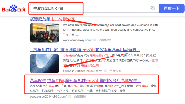 寧波合*汽摩配件有限公司百度關(guān)鍵詞排名排名效果展示