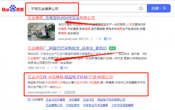 我們公司與揚*電子科技(寧波)有限公司合作中,對這個公司所經(jīng)營的五金模具這個行業(yè)提供了網(wǎng)站推廣,與該公司的合作,更多的客戶讓我們公司為其提供關鍵詞搜索排名,通過每一次合作,我們公司不斷完善自己,同時希望合作伙伴在經(jīng)營的路上越來越好。
