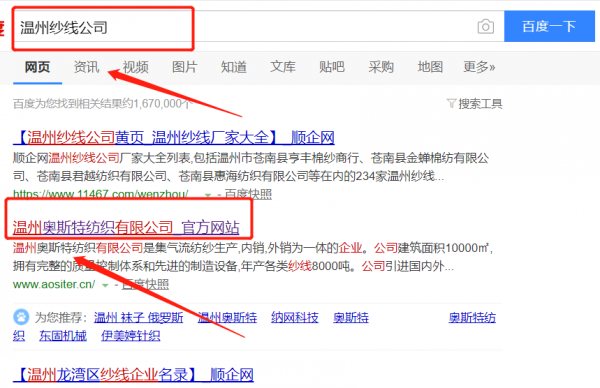 我們公司與溫州奧斯特紡織有限公司合作中,對這個公司所經營的紗線這個行業提供了關鍵詞搜索排名,與該公司的合作,更多的客戶讓我們公司為其提供關鍵詞搜索排名,通過每一次合作,我們公司不斷完善自己,同時希望合作伙伴在經營的路上越來越好。