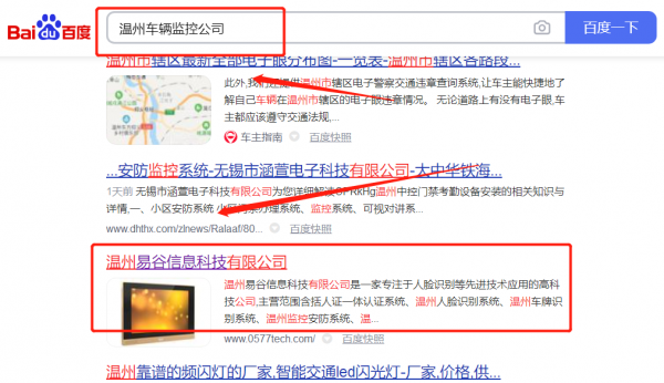 我們公司與溫州*谷信息科技有限公司合作中,對這個公司所經營的車輛監控這個行業提供了網站推廣,與該公司的合作,更多的客戶讓我們公司為其提供百度快照排名,通過每一次合作,我們公司不斷完善自己,同時希望合作伙伴在經營的路上越來越好。
