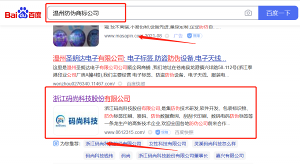 我們公司與浙江*尚科技股份有限公司合作中,對(duì)這個(gè)公司所經(jīng)營(yíng)的防偽商標(biāo)這個(gè)行業(yè)提供了優(yōu)化排名,與該公司的合作,更多的客戶讓我們公司為其提供百度快照排名,通過(guò)每一次合作,我們公司不斷完善自己,同時(shí)希望合作伙伴在經(jīng)營(yíng)的路上越來(lái)越好。