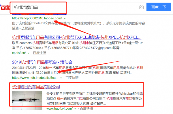 杭州皓日汽車用品有限公司跟本公司簽訂快速排名合同