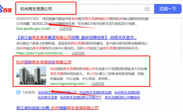 杭州*能再生資源回收有限公司與我司簽下百度霸屏協議