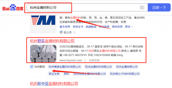 杭州*實金屬材料有限公司百度排名專注一站式品牌營銷整合推廣