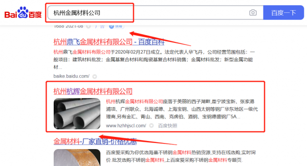 杭州杭*金屬材料有限公司百度排名案例欣賞