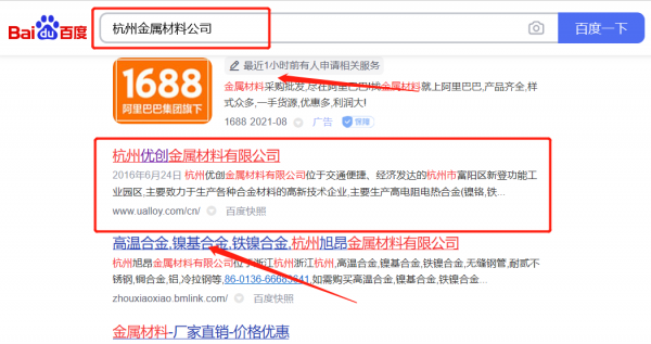 杭州優(yōu)*金屬材料有限公司百度排名讓網(wǎng)站輕松覆蓋在搜索引擎