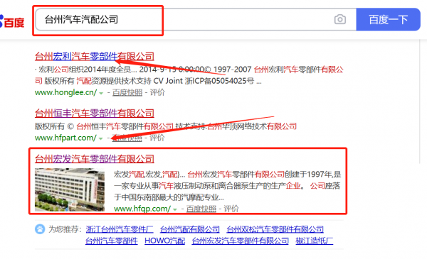 我們公司與臺(tái)州*發(fā)汽車(chē)零部件有限公司合作中,對(duì)這個(gè)公司所經(jīng)營(yíng)的汽車(chē)汽配這個(gè)行業(yè)提供了關(guān)鍵詞搜索排名,與該公司的合作,更多的客戶讓我們公司為其提供SEO網(wǎng)站優(yōu)化,通過(guò)每一次合作,我們公司不斷完善自己,同時(shí)希望合作伙伴在經(jīng)營(yíng)的路上越來(lái)越好。