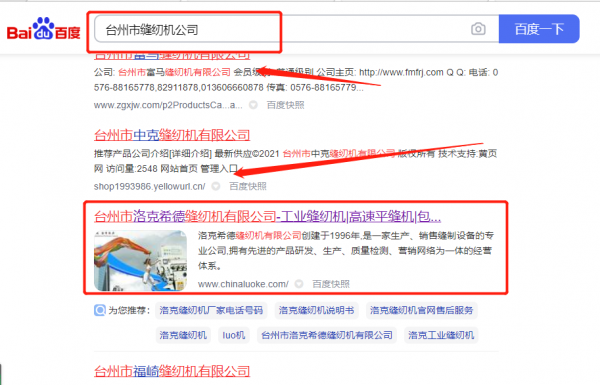臺州市洛*希德縫紉機有限公司SEO優化最快上詞效果展示