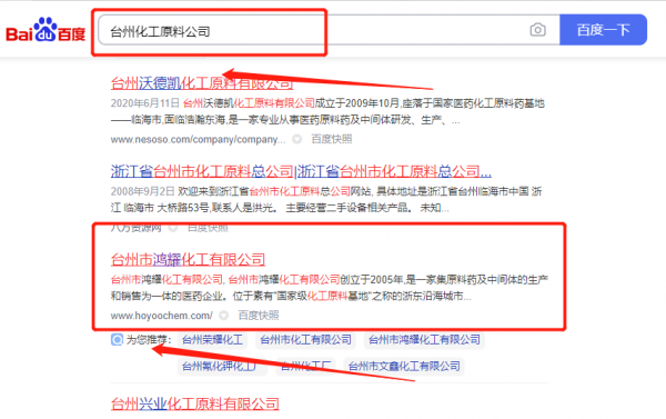 臺州市鴻*化工有限公司百度關鍵詞排名專注一站式品牌營銷整合推廣