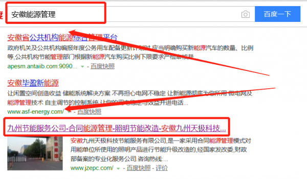 我們公司與安徽九州天極科技節(jié)能服務(wù)有限公司合作中,對這個公司所經(jīng)營的能源管理這個行業(yè)提供了SEO推廣,與該公司的合作,更多的客戶讓我們公司為其提供SEO推廣,通過每一次合作,我們公司不斷完善自己,同時希望合作伙伴在經(jīng)營的路上越來越好。