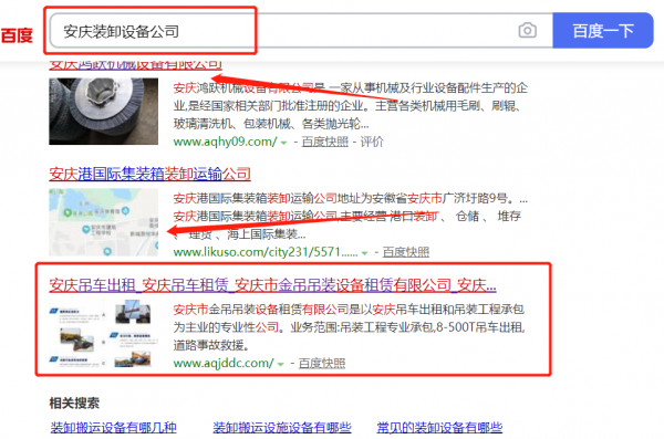 安慶市*吊吊裝設備租賃有限公司選用我司企業裝卸設備的網站優化產品,其SEO關鍵詞有裝卸設備。不管是PC、還是移動端、微信或B2B行業平臺,做到網絡推廣無死角,全方位覆蓋。根據用戶的意圖和行為數據,精準用戶畫像,識別每一位用戶真實需求及興趣愛好,實現最大化廣告效果。安慶市*吊吊裝設備租賃有限公司成立于1999年,是經安慶市市場監督管理局審核的有資質的公司,其統一社會信用代碼:91340800**2RFUKG7T。公司地址:安徽省安慶市迎江區先鋒巷14幢4單元507室。