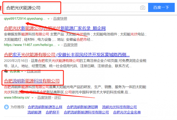 我們公司與合肥流明新能源科技有限公司合作中,對這個公司所經營的光伏能源這個行業提供了百度快照排名,與該公司的合作,更多的客戶讓我們公司為其提供百度快照排名,通過每一次合作,我們公司不斷完善自己,同時希望合作伙伴在經營的路上越來越好。