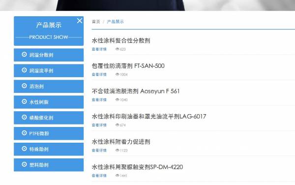 黃山*盛源新材料科技有限公司選用我司企業(yè)研發(fā)服務(wù)行業(yè)的網(wǎng)站優(yōu)化產(chǎn)品,其SEO關(guān)鍵詞有 涂料增稠劑,水性消泡劑,水性流平劑,水性分散劑,防流掛助劑,防沉劑,烤漆降溫劑,聚四氟乙烯微粉,聚四氟乙烯蠟粉,耐磨劑,抗滴落劑,水性烤漆降溫劑,酸催化劑,膠衣消泡劑,防閃銹劑,水性流平劑,烤漆降溫劑,膠衣流平劑,分散劑,降粘劑,防浮色助劑,觸變劑,氟改蠟粉,聚四氟乙烯,不粘涂料助劑,水性涂料防縮孔助劑,非硅流平劑,氟改丙烯酸流平劑,非硅消泡劑,流平劑,消泡劑。其特點(diǎn)是用很合適的展示方式、展示效果、站點(diǎn)框架,把客戶及其用戶很關(guān)心的問(wèn)題突出表現(xiàn);并以簡(jiǎn)潔明朗的設(shè)計(jì)風(fēng)格,清晰展現(xiàn)公司水平實(shí)力,確保一秒抓住目標(biāo)用戶眼球,給用戶留下良好的第一印象。黃山*盛源新材料科技有限公司成立于2016年,是經(jīng)黃山市市場(chǎng)監(jiān)督管理局審核的有資質(zhì)的公司,其統(tǒng)一社會(huì)信用代碼:91341000MA2N54**72。公司地址:安徽省黃山經(jīng)濟(jì)開發(fā)區(qū)梅林大道89號(hào)。